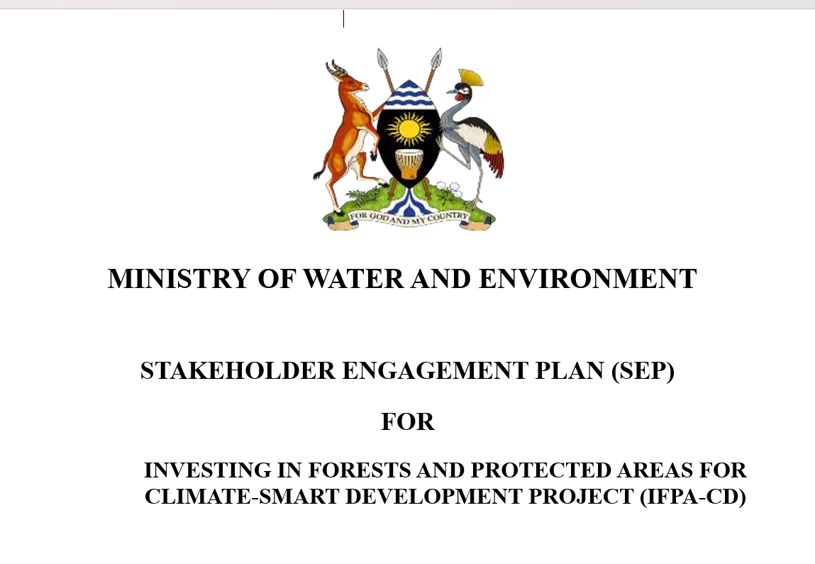 The Stakeholder Engagement Plan (SEP) for the Uganda Investing in Forests and Protected Areas for Climate Smart Development (IFPA-CD) project is a comprehensive framework designed to guide inclusive and meaningful interaction with all project stakeholders throughout the project’s lifecycle. It outlines strategies for identifying and analyzing stakeholders—including primary groups like local communities and the marginalized Batwa ethnic group, secondary influencers, and vulnerable populations—and details methods for effective information disclosure, consultation, and feedback. The plan establishes a Grievance Redress Mechanism (GRM) to address concerns and emphasizes principles of free, prior, and informed consultation, ensuring that engagement is accessible, non-discriminatory, and culturally appropriate, particularly for the most vulnerable, to foster project understanding, ownership, and successful implementation.